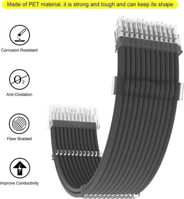 Premium PET Sleeved PSU CablesWoven with PET material, more heat-resistant than cotton mesh, will not cause heat shrinkage, PET fiber is also more robust, maintaining better durability while the color is more vibrant, a wide range of colours to match each and customise the chassis.