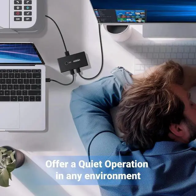 One-Botton Switch & LED Light Indicator: You can easily switch between 2 computers with a single click on the button with LED indicating the active computer. UGREEN USB Switcher make switch effortless.