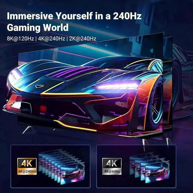 DP 2.1 for Exciting New Connection at 40 Gbps: The DisplayPort 2.1 is a fascinating new connection option for high-end computers and gaming monitors. DP 2.1 has a max bandwidth of up to 40 Gbps, providing higher resolutions and refresh rates. With stable signal transmission, the USB C to DisplayPort cable ensures amazing sound and image quality, and an end to screen flickering. It supports HDR, HDCP2.3, VRR and ALLM, eARC, DTS, and Dolby, through which you can get an immersive visual feast