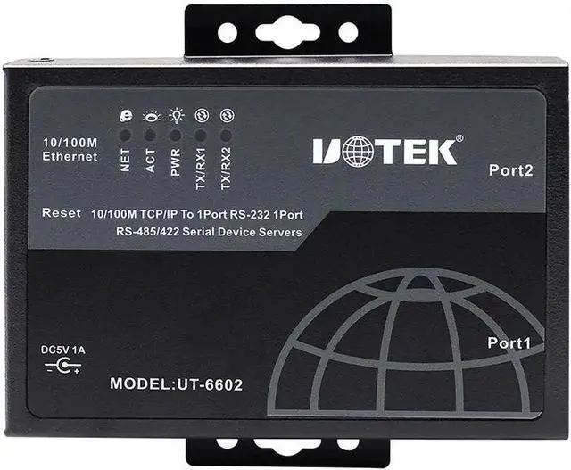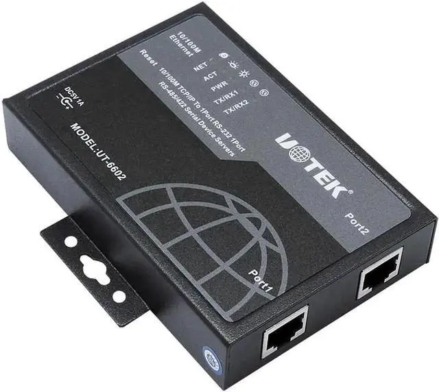 UT-6602 serial communication server, also called terminal server or serial server, is a converter between asynchronous serial port RS-232/422/485 and Ethernet. It is a standalone intelligent device with CPU and embedded OS and complete TCP/IP protocol stack. It completes transparent data transmission between RS-232/422/485 and Ethernet in both directions and allows RS-232/422/485 serial devices to connect to the network immediately.