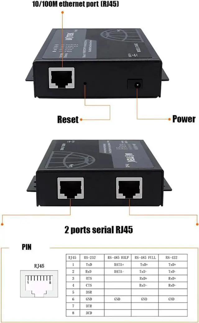 With 2 serial ports, it can connect to various serial devices such as terminals, Modem, barcode machines, cash registers, ISDN, terminal adapters, serial printers and PCs, and can realize remote control functions.