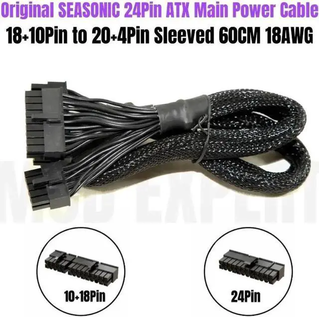 Original SEASONIC M12II EVO 520W 620W 750W 850W 18+10Pin to 20+4Pin 24Pin Sleeved ATX Main Power Cable for Bronze Modular PSUs