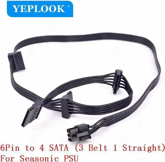 PCIe 6Pin to 4 SATA 3 Angled 1 Straight 15Pin Male HDD Cable, 6Pin to SATA, 50+15cm+15cm 18AWG For Seasonic PRIME All Series PSU GX/PX/TX/Snow Silent/Gold/Ultra Gold/Platinum/Ultra Platinum/Ultra Titanium 1300W, 1200W, 1050W, 1000W, 850W, 750W, 650W, 550W *Made of high quality plastic material, heat resistant, not easy aging, very durable.