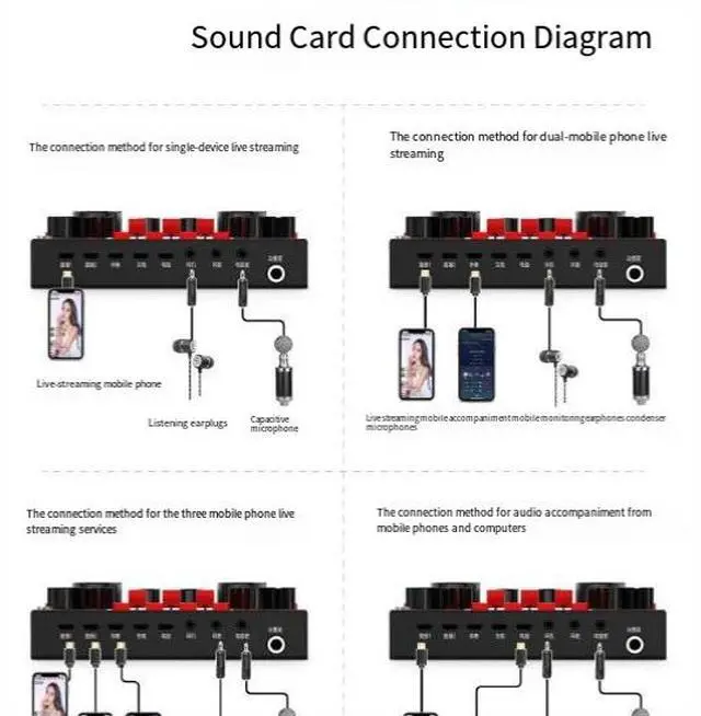 V8S sound card live streaming for Douyin influencers' mobile phones and computers, karaoke, capacitor voice changer, microphone, Bluetooth kit
