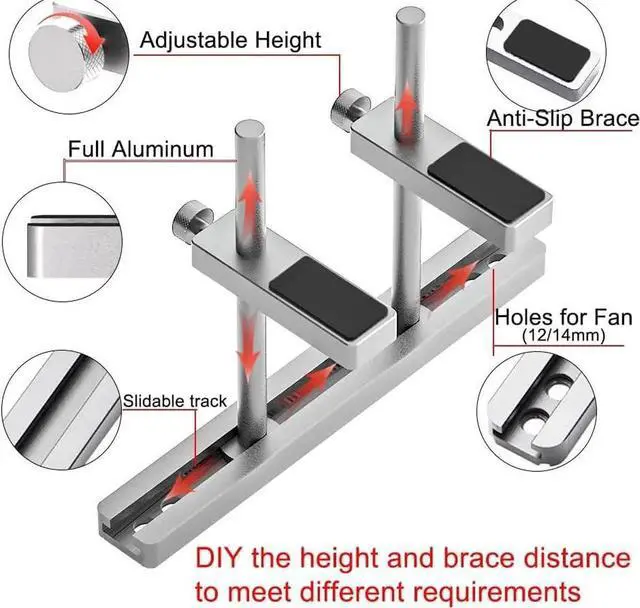 Dual Brace and Mounting Fan Design: provide your graphics card double protection and stability, particularly suitable for the new heavy graphics card.Height is adjustable, MAX 128mm