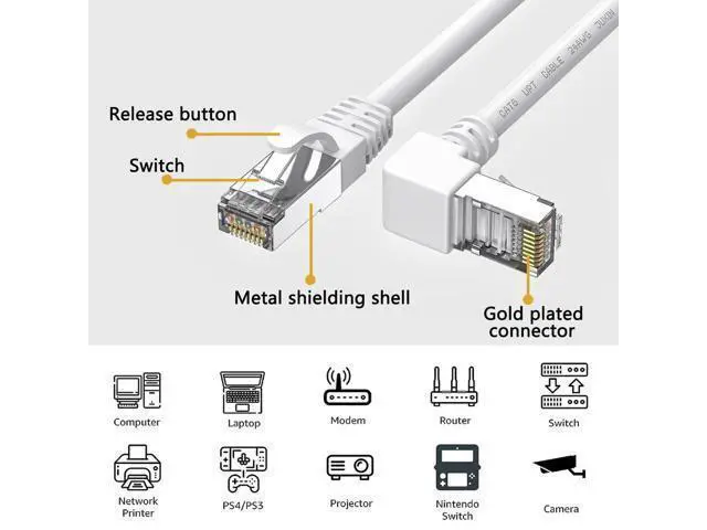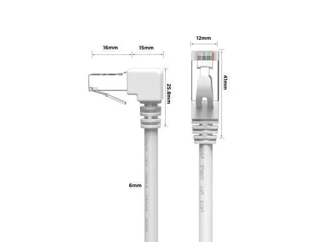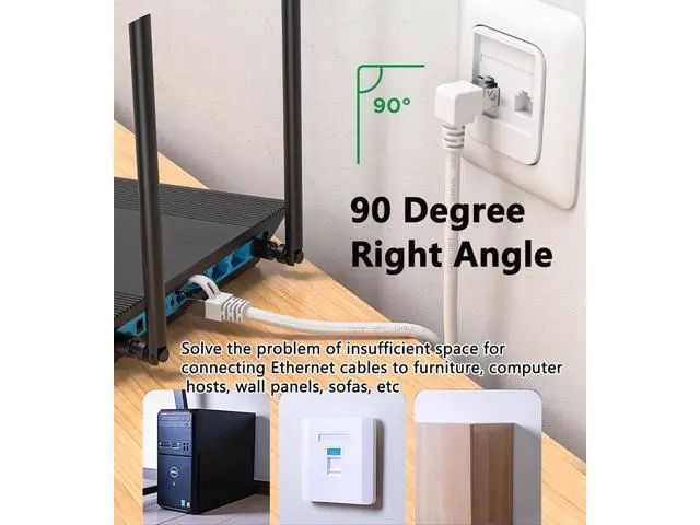 90 Degree Right Angle Ethernet Adapter Can be better used in narrow spaces, tight fit your laptop or connect to network wall plate behind furniture, prevent the lan cable from bending,. White ethernet patch cable can be completely hidden of the white wall without being easily detected. High Performance Well constructed with metal connectors, Flexible PVC jacket, 26 AWG pure copper conductor, to ensure the stability of transmission. Backward compatible with Cat5e, Cat5 cable network, comply with UL specifications for Cat 6 ethernet cables. Upload & Download Speed Support bandwidth up to 250MHz & Transmitting data at speeds of up to 1Gbps for your low latency browsing the Internet, online games, online games, stream videos, music, and more.