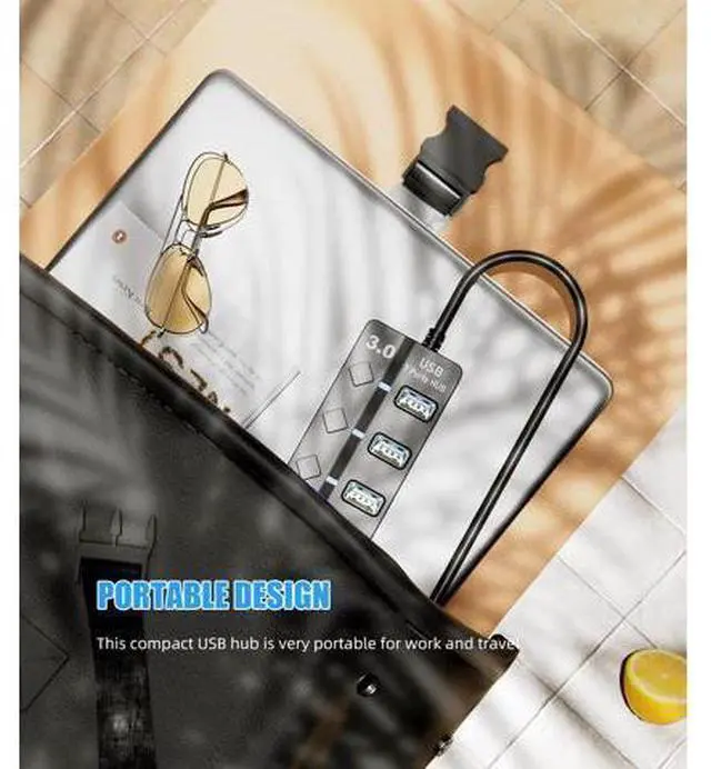 Usb hub Long cable: as long as 3ft length build in import cable enhanced connectivity to hub body dispel your concerns for too short to connect to your pc/tablet. Compact & PortableIt's very easy to use just plug and play. Light weight make it easy to carry and suitable for your travel office home and school. 5Gbps Data Transfer SpeedThis USB hub 3.0 syncs data at blazing speeds up to 5Gbps which is more than 10 times faster than USB 2.0 fast enough to transfer an HD movie in seconds.