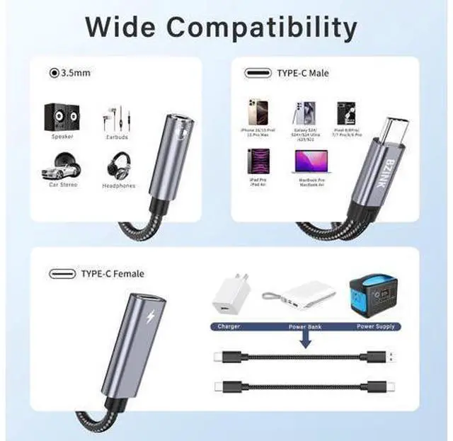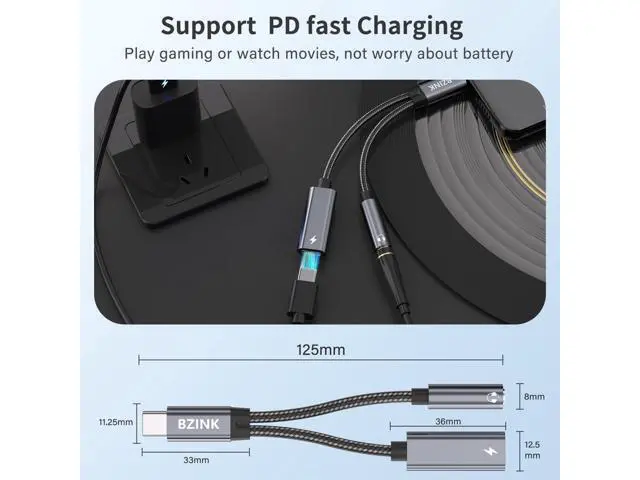 The Best Music ExperienceThis BZINK usb c to 3.5 mm audio headphone and charger adapter built-in filter cell no current noise and has a bulit-in premium DAC chip you can get the better music experience from this usbc headphone adapter 3.5 mm interface compatible with universal earphone/headsets/headphones adapter to traditional 3.5 mm interface compatible with traditional earphones. Don't Worry about