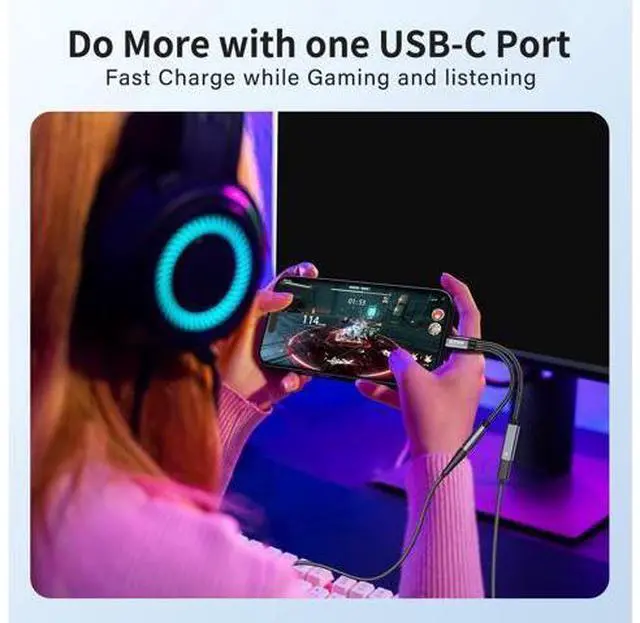 & Charging: This dongle adapter usb c splitter USBC into a PD-compatible port and a 3.5 mm jack allowing music games calls and video while fast-charging.