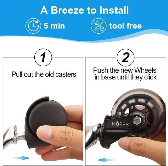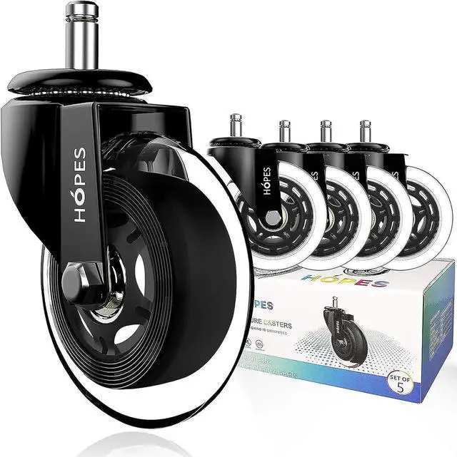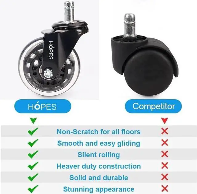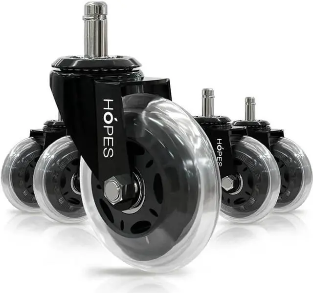 Nothing but smooth sailing with these desk and gaming chair wheels. The rollerblade-style swivel makes quiet maneuvering a breeze, without any squeaks or creaks.