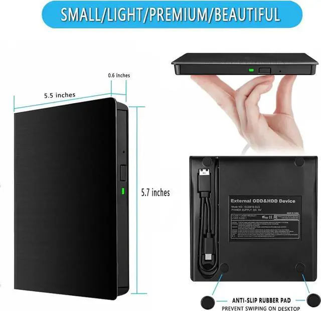 Lightweight: At just 0.7 inches thick and 0.66 pounds, the external CD/DVD drive for laptop is ultra-light and portable, you can easily carry this external DVD drive in your laptop bag wherever you go. Its brushed white case and silver aluminium top plate provide a stylish look