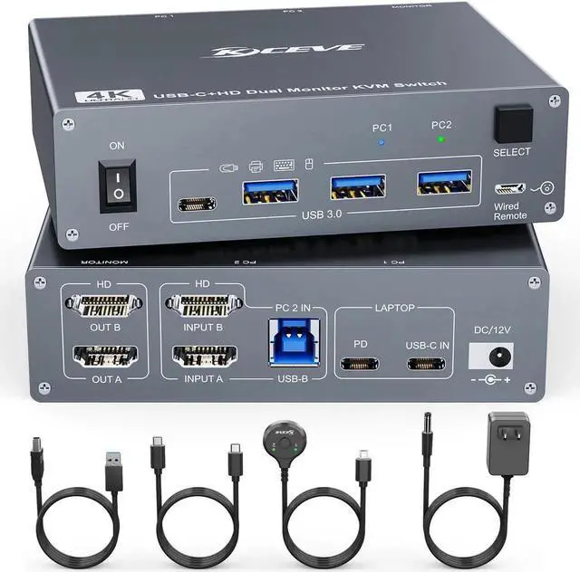 [(1 Laptop + 1 Desktop computer KVM Switch )] This kvm switch designed for those user who has 1 TYPE-C + 1 HDMI port computer and 1 HDMI port monitor. Please use the typec-c cable replacement support data transfer, if the cable only support charging, monitor will not show image. Support transfer video and audio via USB type C (Laptop) and HDMI (PC2).