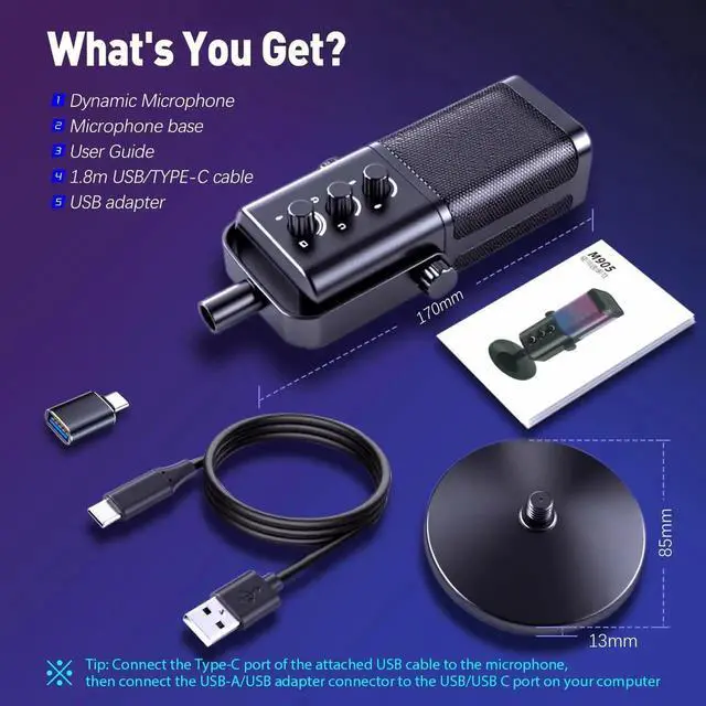 Controllable RGB Lighting: The VCOM gaming microphone features stylish RGB lighting effects, supporting multiple gradient modes including dynamic multicolor, breathing light, or static solid color options. The lighting not only creates an immersive gaming atmosphere but also adds an extra visual appeal to your gaming setup. Press briefly to change the RGB lighting mode, and press and hold to turn the RGB lighting off or on,