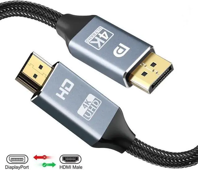 ![Alt view image 6 of 7 - JVFYI DisplayPort to HDMI Cable 10ft/3M, 4K DP to HDMI Cable [Gold-Plated Plug, Aluminium Shell] Nylon Braided Uni-Direction Display Port to HDMI Lead 10 ft.](https://c1.neweggimages.com/productimage/nb640/C2ZPS2601240KYZEME2.jpg)