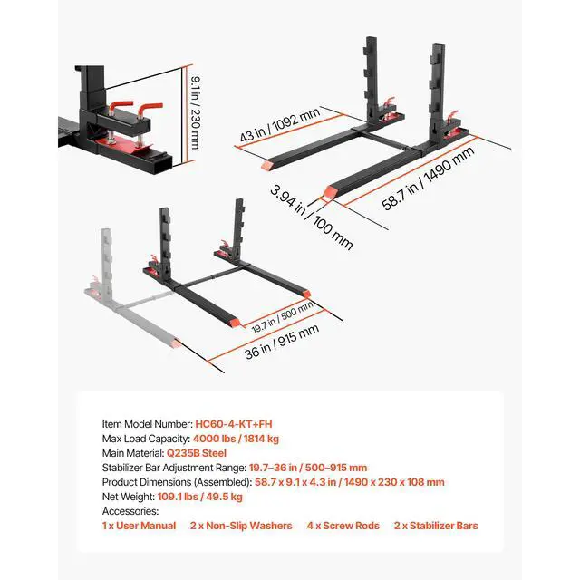 Stabilizer Bar Adjustment Range: 19.736 in / 500915 mm