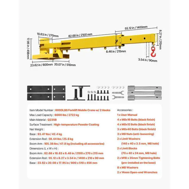 Item Model Number: 6000LBS Forklift Mobile Crane w/ 2 Hooks