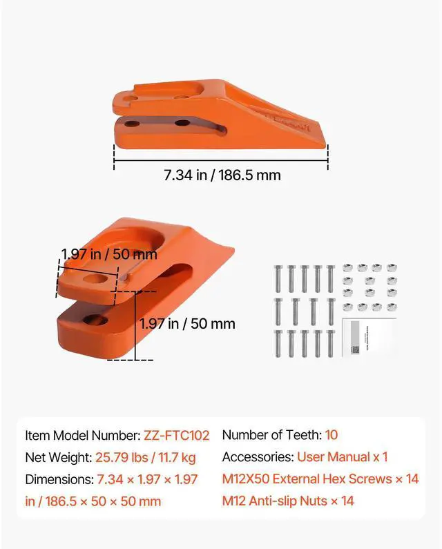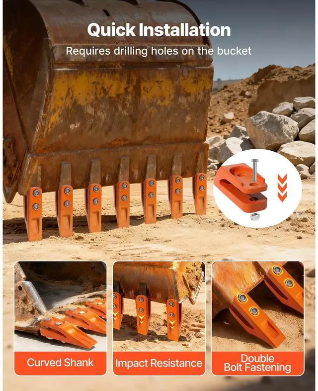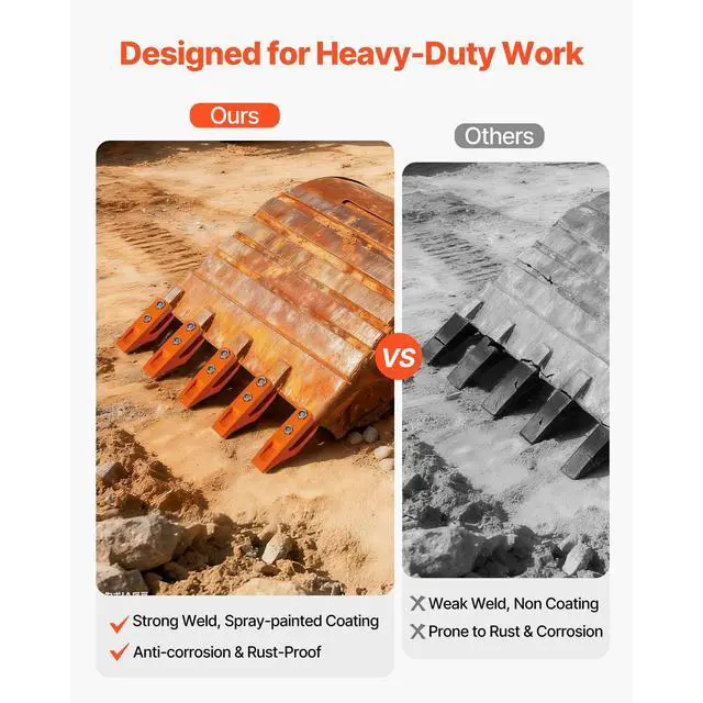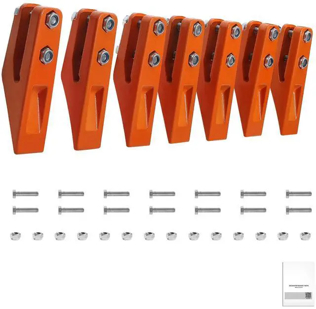 Excavator Bucket Teeth with Pins, 7 Pack 684447 Bucket Tooth Set Fits 5/8-in Buckets Edge, Heavy Duty 7.34 in Bolt on Digging Buckets Teeth Replacement for Skid Steer & Mini Excavator