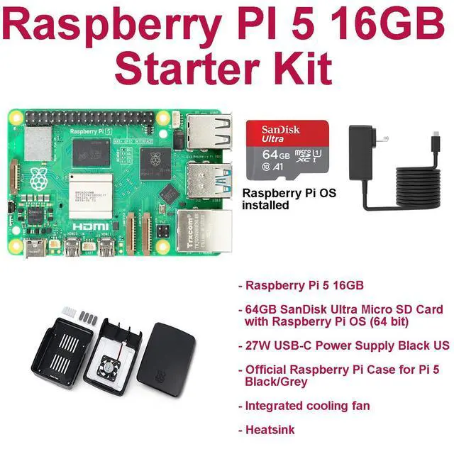 - 64GB SanDisk Ultra Micro SD Card with Raspberry Pi OS (64 bit)