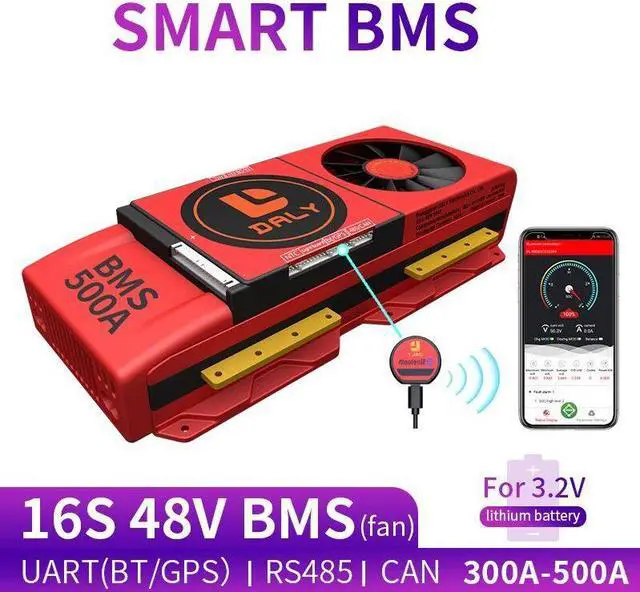 Smart BMS 16S 48V 300A 400A 500A Bluetooth 485 to USB device CAN NTC UART software Li-on Battery protection Board BMS With Fan