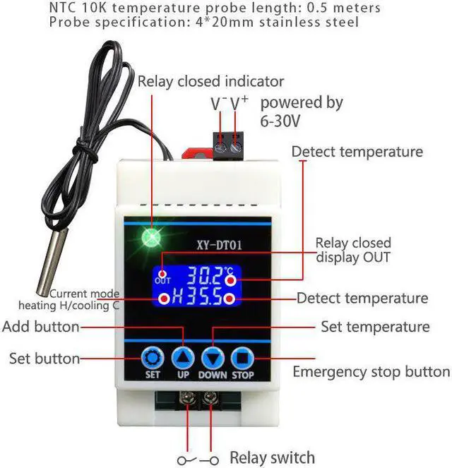 XY-DT01 Digital Thermostat High-Precision Digital Display Temperature Controller Module Cooling And Heating 30A Relay