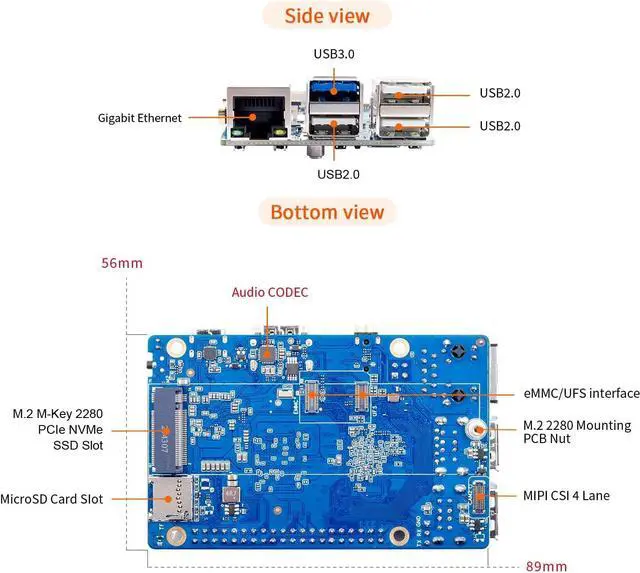 Display: 1x HDMI 2.0 port, supports up to 4K@60Hz/1x 4-lane MIPI DSI display interface