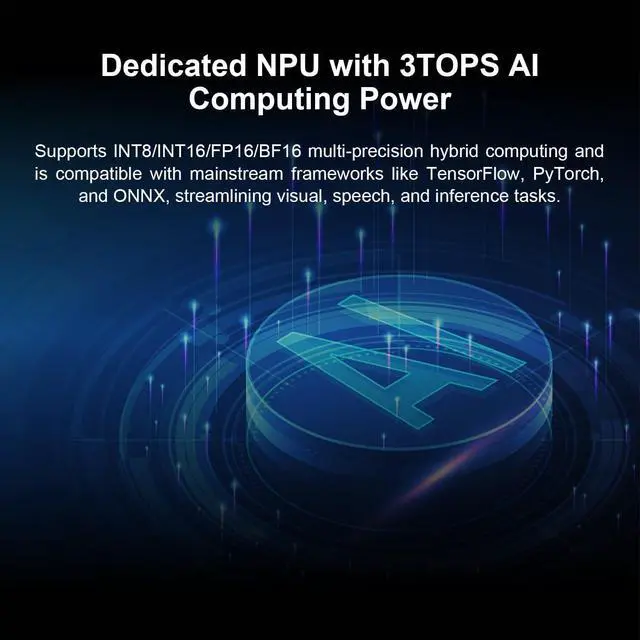 NPU: 3 TOPS @ INT8, supports INT8/INT16/FP16/BF16 mixed precision