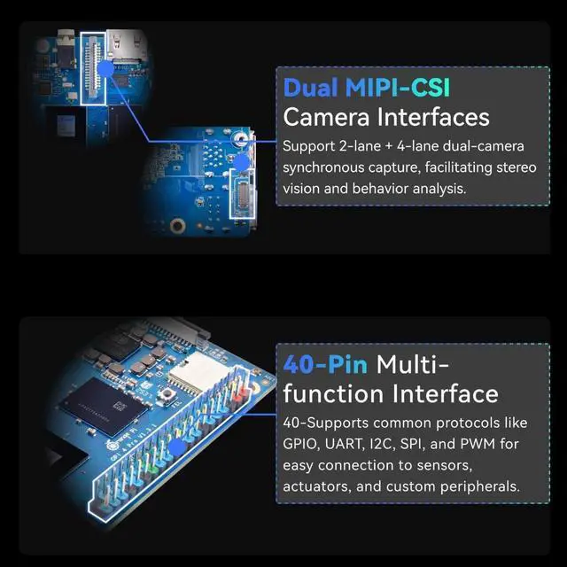 Camera: 1x 2-lane MIPI CSI camera interface/1x 4-lane MIPI CSI camera interface