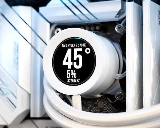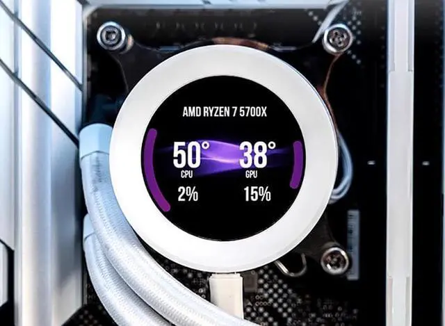 CORN Liquid/Water Cooling Pump Screen, AIDA64/Wallpaper Engine Data Monitoring for Computer Monitoring LCD Display, 2.1 480x480 IPS Screen - Only Need One USB Cable - White