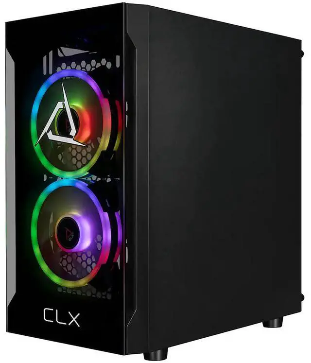 Awesome power for this entry-level CLX gaming machine, but stunning looks too with the black steel CLX Karnak Mini-tower chassis including tempered glass front and side panels, a swing-open side panel door, plus RGB fans inside that you can set to your desired look. If you're on a budget, start your gaming adventure off right with this budget-friendly PC that can grow with you as your gaming skills and needs grow. Be a competitor in all your online gaming battles and more, with this CLX SET gaming PC!