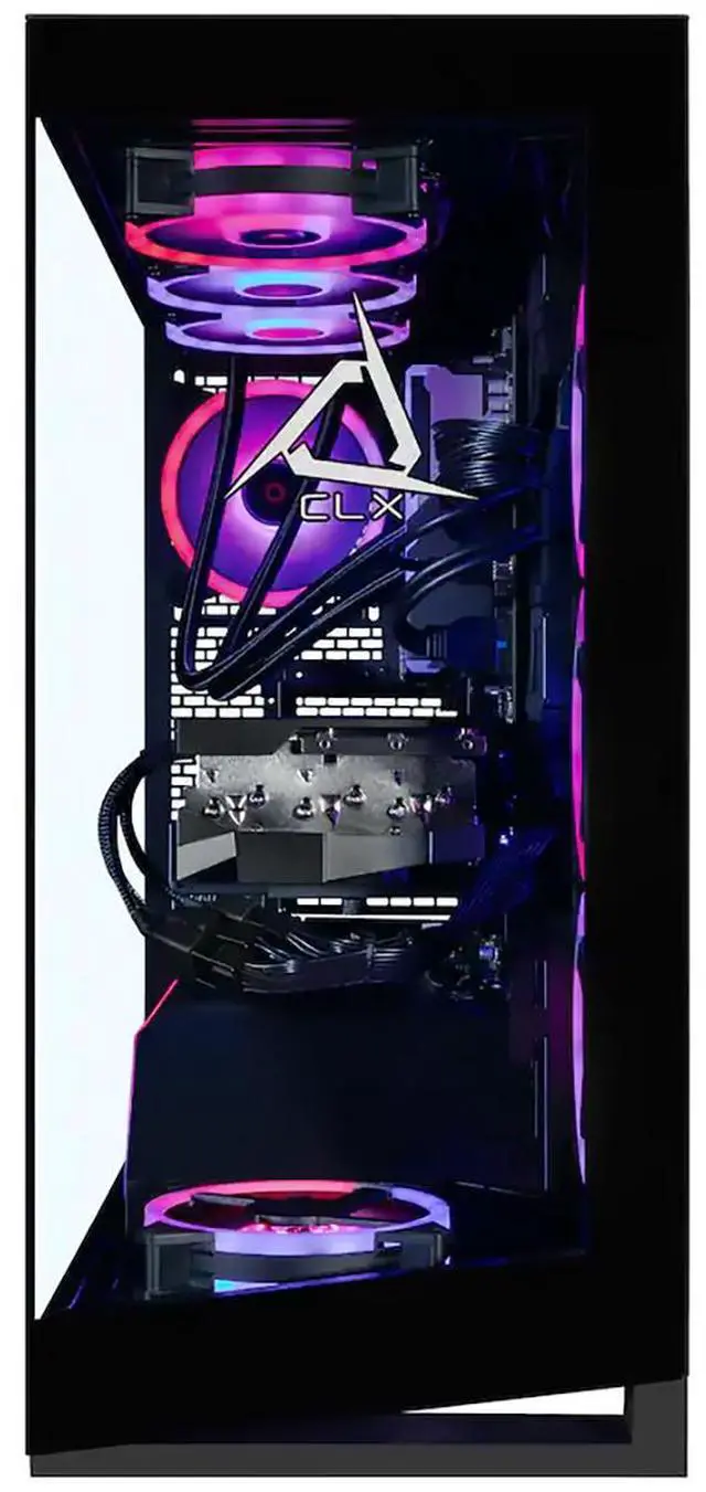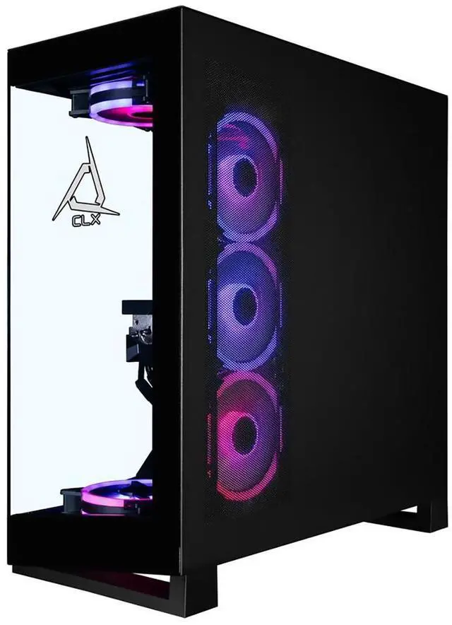 Supporting this beast is 32GB of high-speed DDR5 memory, expandable up to 256GB for ultimate multitasking, AAA gaming, or design projects. Storage is handled by a 2TB NVMe M. 2 SSD, offering lightning-fast access to games, media, and creative assets. The CLX Horus doesn't just perform-it looks incredible. Its NV5 mid-tower black chassis features near-seamless tempered glass panels, integrated Digital-RGB lighting, and several RGB fans for optimized airflow and cooling. Customize your lighting to match your gaming mood while keeping your system running efficiently at low temperatures.