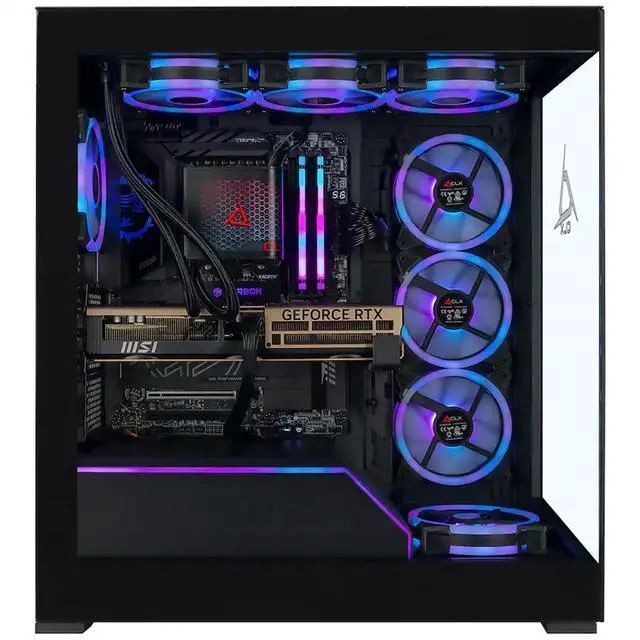 Combined with AI acceleration, this processor powers AAA games, VR, and AI-enhanced creative applications with unrivaled speed. The included Tryx Panorama SE 360mm AIO liquid cooler ensures peak performance while its rotatable AMOLED screen adds a next-level visual flair right at the center of your rig. Graphics are handled by the MSi GeForce RTX 5080 Inspire 16GB OC graphics card, featuring Blackwell architecture, 5th-gen Tensor Cores, 4th-gen Ray Tracing Cores, and DLSS 4 Multi-Frame Generation. AI-driven performance boosts FPS, delivers lifelike visuals, and makes 4K and 8K gaming (display required, not included) breathtakingly smooth.