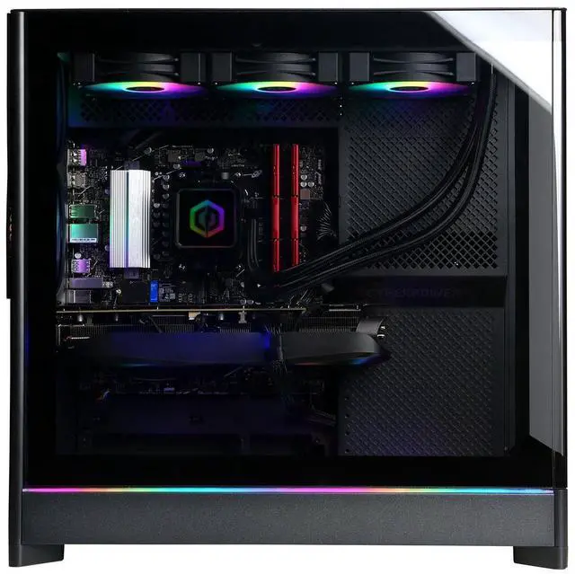 This cutting-edge GPU delivers breathtaking visuals and supports the latest ray tracing technology, making it perfect for immersive gaming and high-resolution content creation. With a substantial 4TB SSD, you can enjoy lightning-fast load times and ample storage space for your extensive library of games and applications. Running on Windows 11 Home, this gaming desktop offers a modern and intuitive user interface, optimized for both productivity and entertainment. The liquid cooling system ensures that your system remains cool and efficient, even during intense gaming sessions. Encased in a sleek black chassis, the CyberPowerPC Gamer Supreme not only performs exceptionally but also makes a bold statement with its striking design.