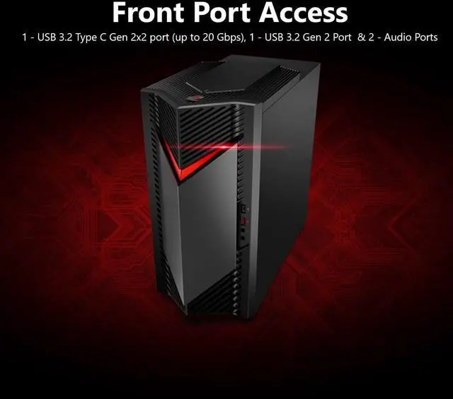 • BUILT TO CONQUER: The fiery-accented, black metal Nitro 50 gaming PC is all the fuel you need for those high frame, lag-free game sessions. Go on and switch settings to ultra with an injection of the
