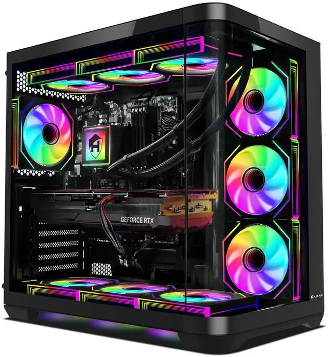 Experience top-tier performance and exceptional gaming with the HAJAAN gaming PC. Powered by an Intel Core i9-14900K processor and 64GB of DDR5 RAM, it offers smooth multitasking capabilities. Equipped with NVIDIA GeForce RTX 5070 Ti 16GB GDDR7 graphics, it handles even the most demanding games and content creation. Plus, with 2TB of NVMe storage, you'll have plenty of space for all your files and projects.
