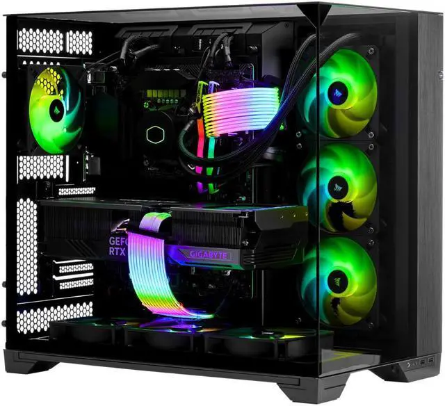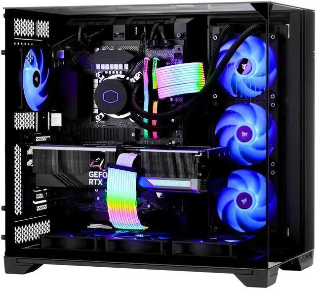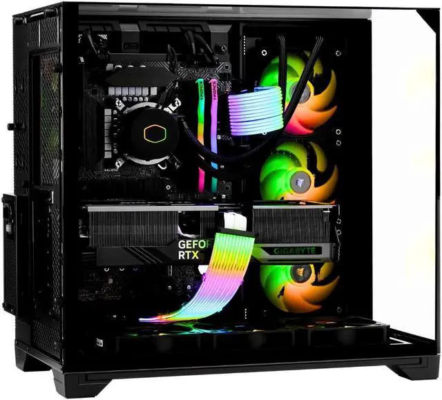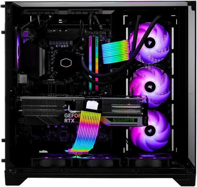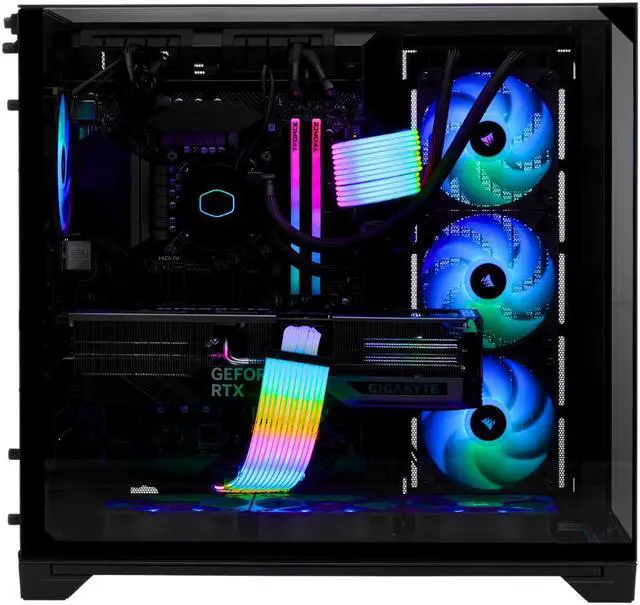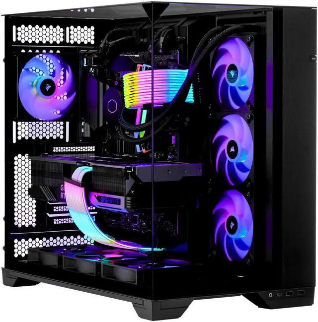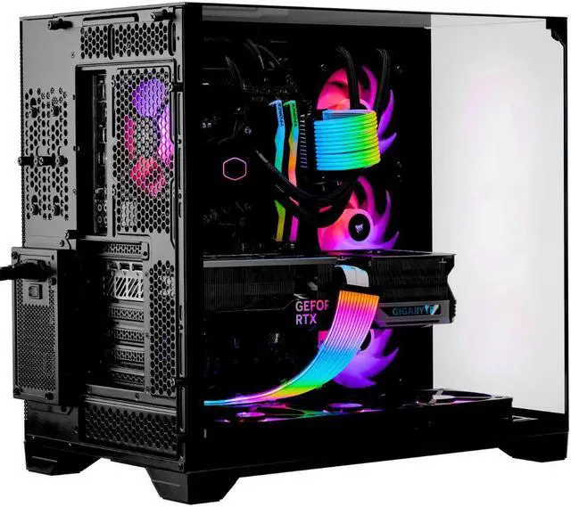 Gaming enthusiasts are sure to love this gaming PC with a transparent side panel. This high-performance system offers a new AMD Ryzen 7 9800X3D processor and 64 GB of RAM to enable incredible gaming experiences. It's also equipped with an NVIDIA GeForce RTX 40 SERIES graphics card.