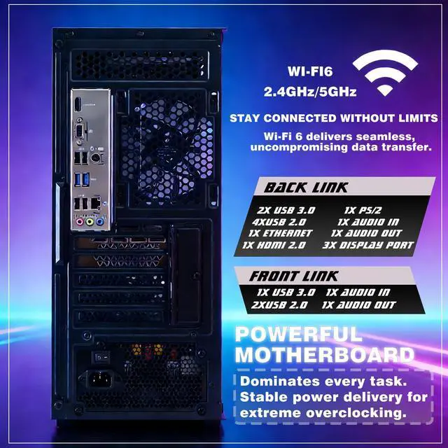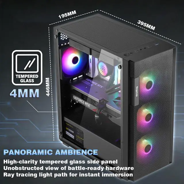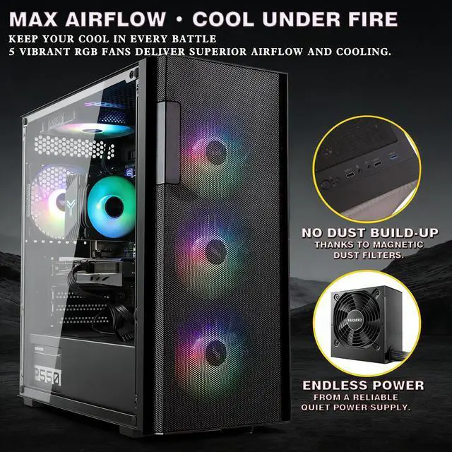 • Stylish & Efficient Heat Dissipation: Window side case panel + 6 RGB fans (multiple colors) for stunning lighting and maximum air circulation during high-load use.