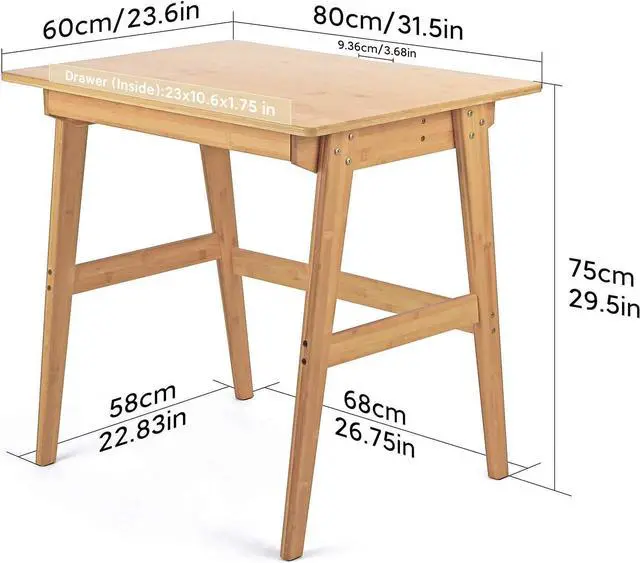 Eco-friendly Study Desk: Selected quality bamboo; Crafted in detail. There will be a smooth surface. Easy to clean. Sturdy and durable. A crossbar between two legs is more stable