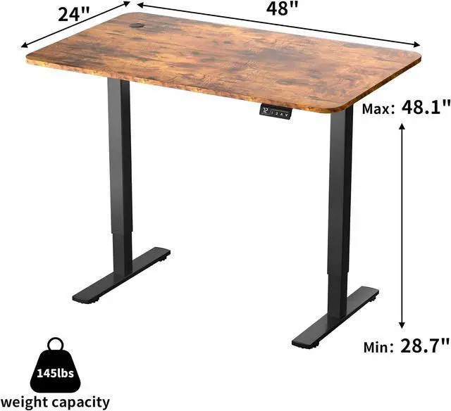 This standing desk features a 48" x 24" (120 x 60 cm) whole piece desktop, which can provide a completely smooth surface, eliminating bumps and noise caused by gaps while increasing the stability of the whole table. Suitable for placing various monitors and laptops, which can bring you a comfortable experience for work, studying and web surfing.