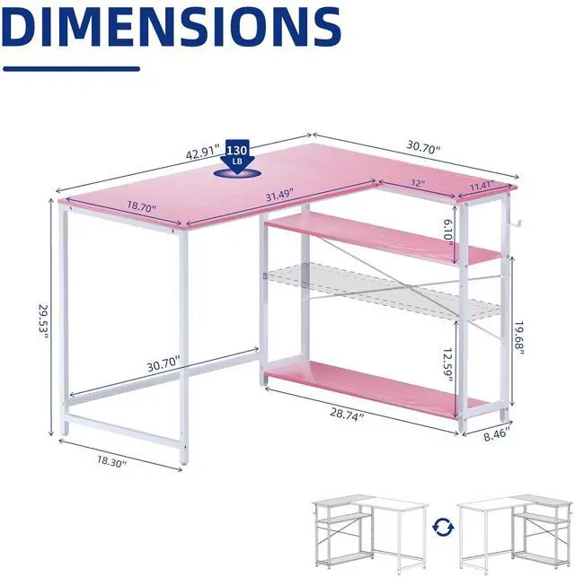 Our desk features a truly reversible design. You can install the storage shelves on either the left or right side during assembly to perfectly match your room's corner or your personal workflow.