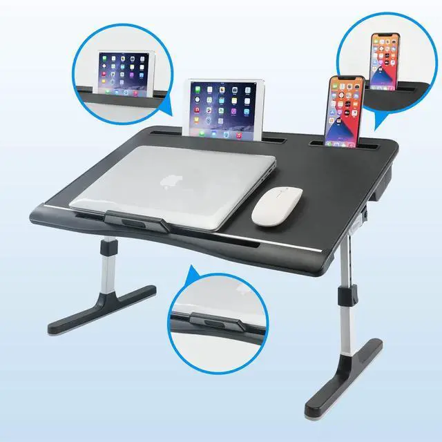 ![Alt view image 3 of 7 - KLEAR Laptop Bed Tray Table [Luxury PVC Leather], Adjustable Laptop Desk for Bed, Foldable Lap Desk with 2 Drawers, Multifunctional Lap Table for Working, Eating, Writing, Gaming, Drawing (Black)](https://c1.neweggimages.com/productimage/nb640/C5UWD2604130H1Q0X93.jpg)