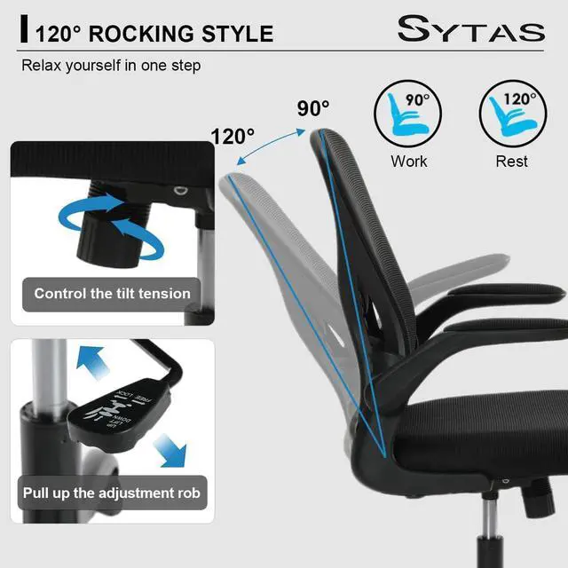 Comfortable Tilt TensionSytas adjustable desks chair has a 90°-120° tilt tension. When you work, the desk office chair have S backrest can protect your spine; when you want to relax, please pull out the adjustment lever of the desk chair to relax your body.