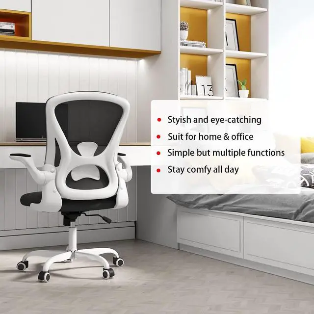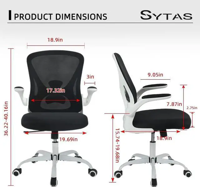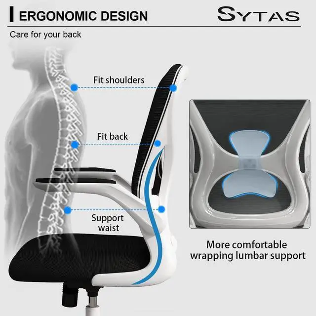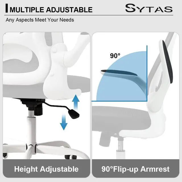 Sytas Office Chair, Ergonomic Home Desk Chair, Computer Mesh Desk Chair Lumbar Support, Flip-up Arms and Height Adjustable(White)