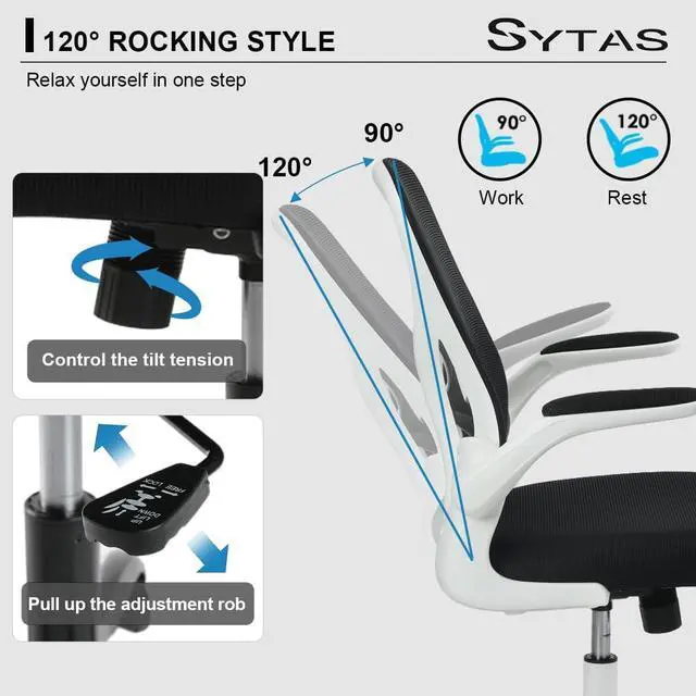 Comfortable Tilt TensionSytas adjustable desks chair has a 90°-120° tilt tension. When you work, the desk office chair have S backrest can protect your spine; when you want to relax, please pull out the adjustment lever of the desk chair to relax your body.