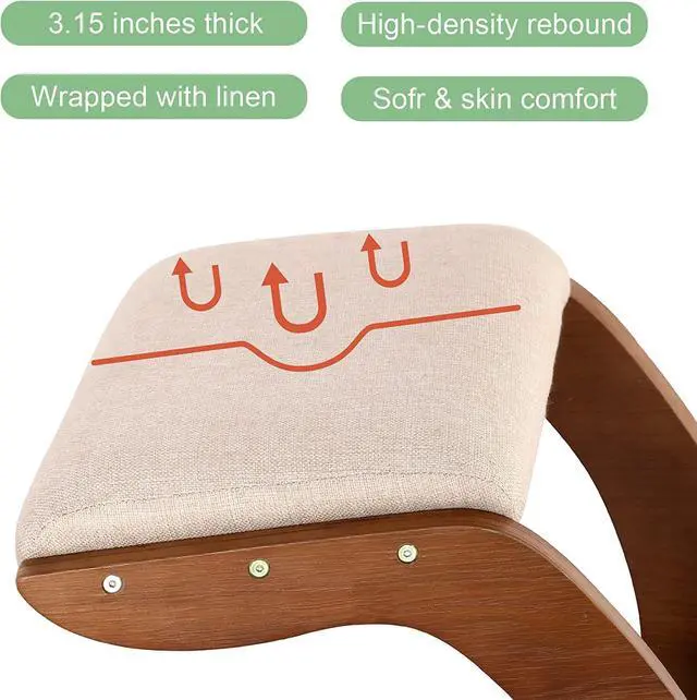 MAXIMUM COMFORT Weve got your back (and your knees, shins, and your behind! ) Your ergonomic kneeling chair is equipped with Solid wood frame & high elastic sponge linen fabric to ensure To ensure the comfort during use.