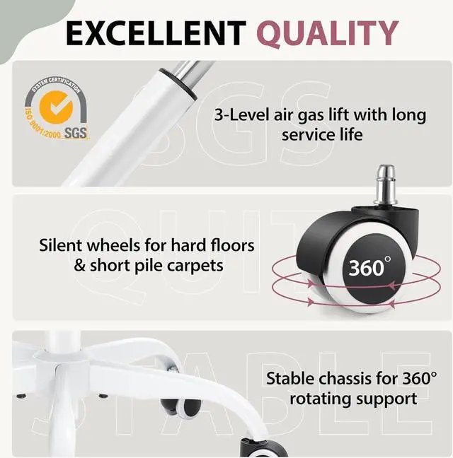 Flexible Adjustable Chair: Primy ergonomic desk chair is equipped with a premium gas rod that allows the seat height to be adjusted from 17.5 "to 21.5", making it suitable for most tables. You can freely adapt to the most comfortable chair height.