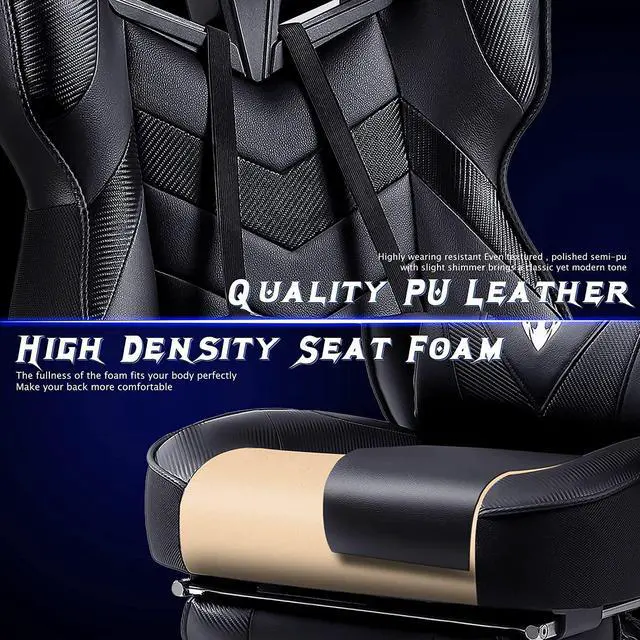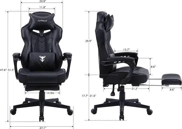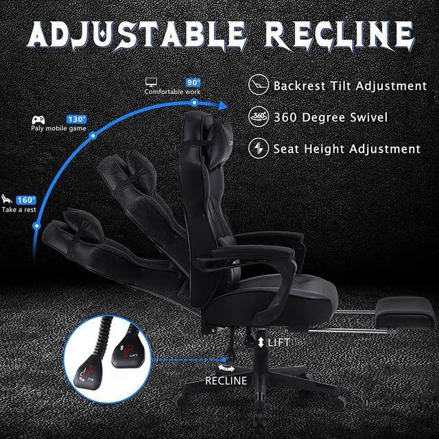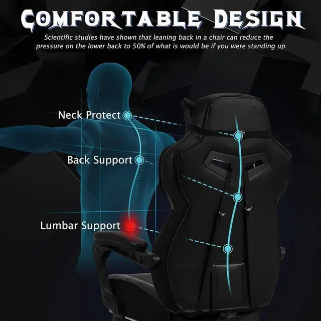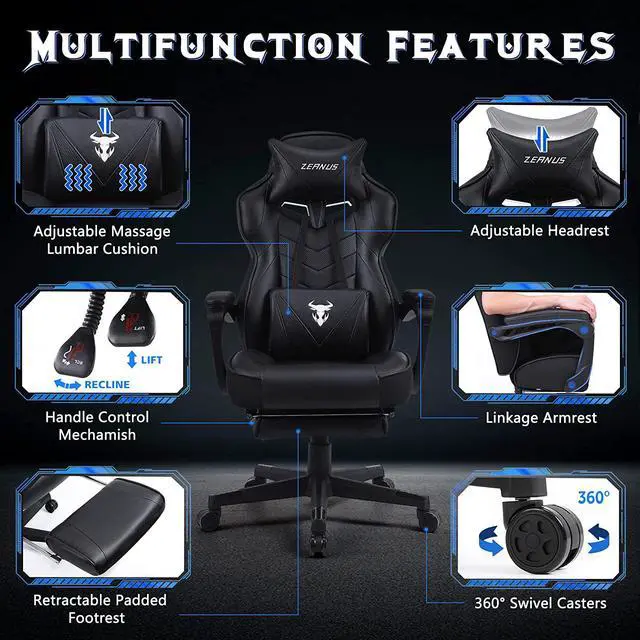 Zeanus Gaming Chairs for Adults Gaming Chair for Heavy People Recliner Computer Chair with Footrest Massage Gaming Chair Ergonomic Office Game Chair Recliner Racing Big and Tall Gaming Chair Black