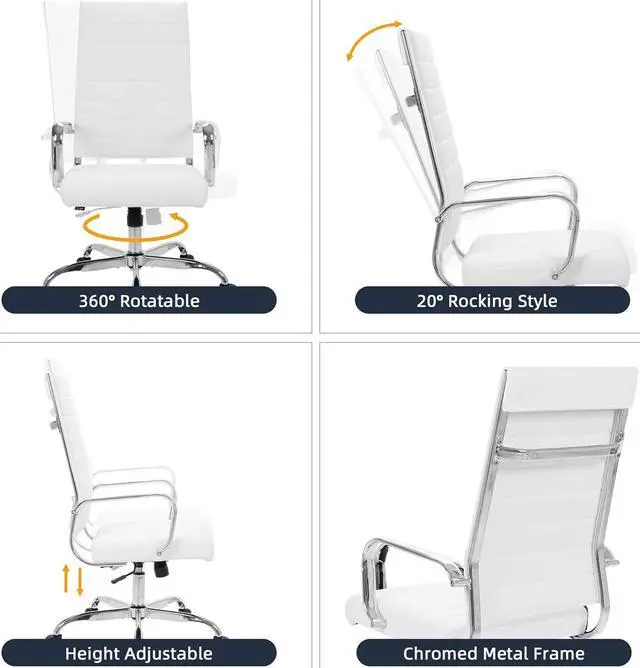 EXCELLENT COMFORT This office chair was designed with your comfort in mind, made from soft PU leather upholstery and soft padding. Ergonomic design offers reliable back support for daily use.
