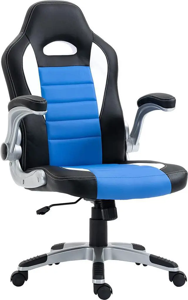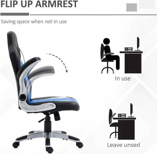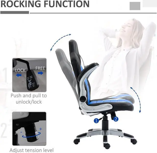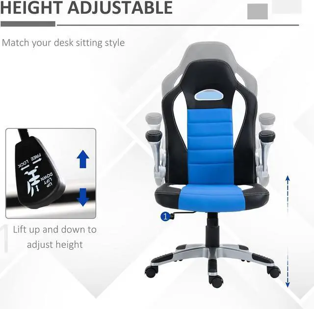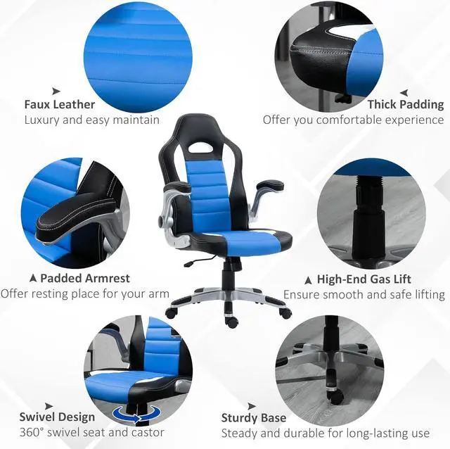 HOMCOM Office Chair Racing Car Office Chair Swivel Excutive Computer Gaming Seat PU Leather with Adjustable Armrest (Blue)