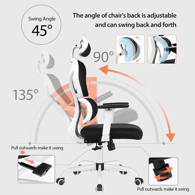 [Tilt Function And Blade Wheels] Three positions tilt angle adjustment and fixed, you can lean back to 90°, 120°, 135°, whether you want to work or sleep, you can enter a break and napping time with your best positionDesk chairs with blade wheels-Silent and smooth. And without scratching the floor, you can move with confidence.