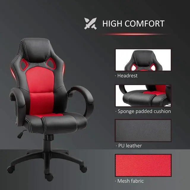 High Comfort: Sponge padded seat cushion, backrest and headrest for excellent sitting experience. Skin-friendly PU leather and breathable mesh fabric for soft touching, allows long-lasting using.